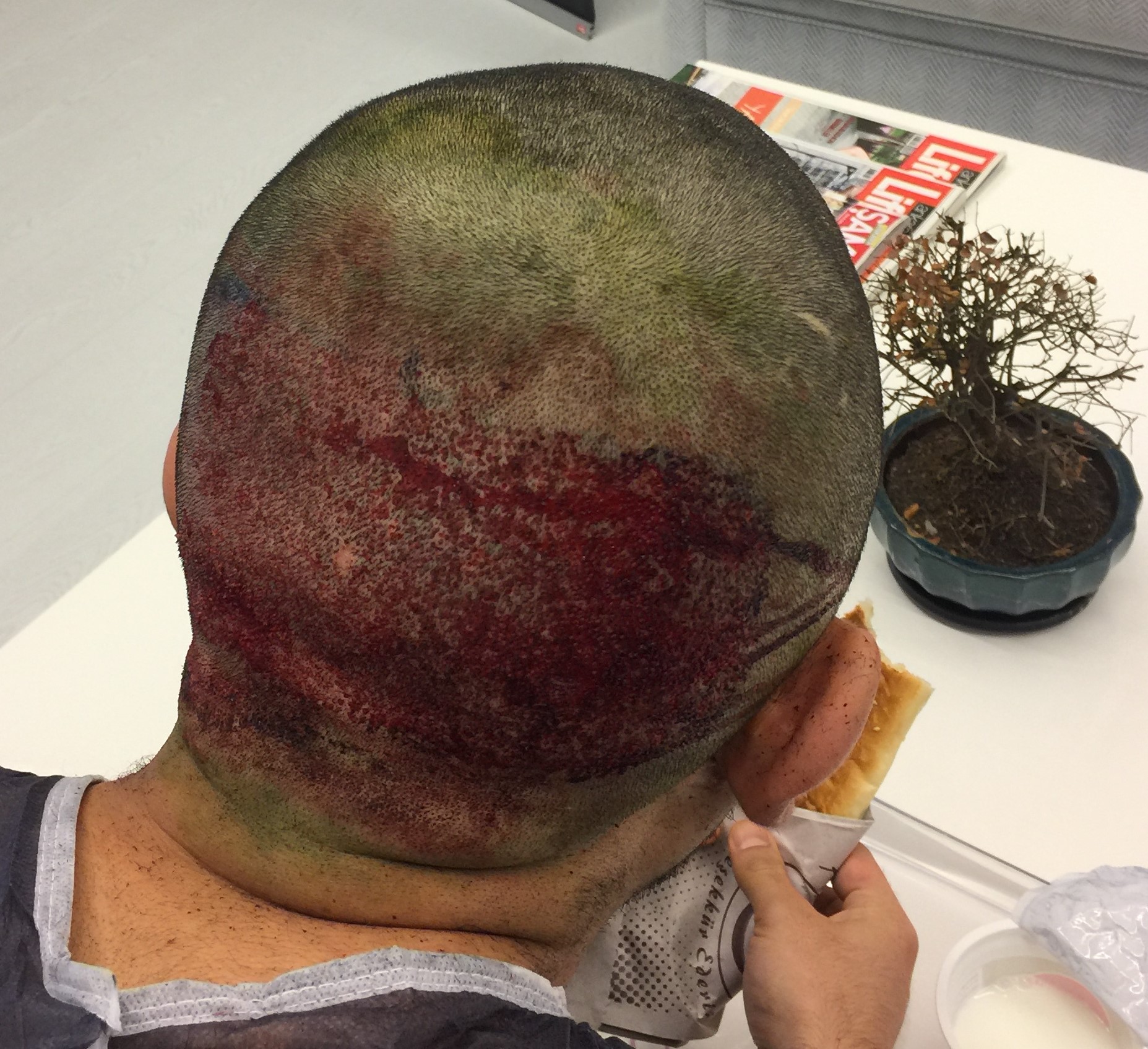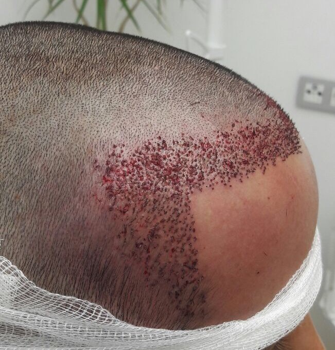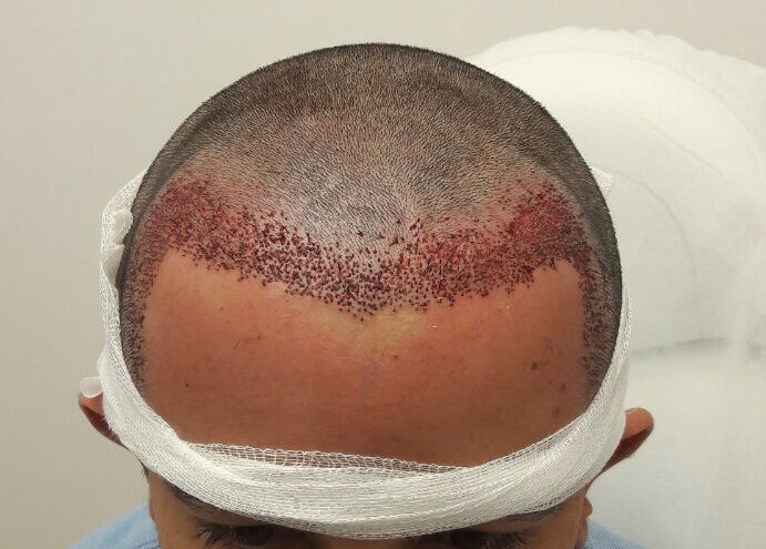 Toplamda 2200 greft ekildi. Sıklık çok fazla ve özellikle büyük boy yüklediğim ekim kanallarının açılmış haline bakarsanız, kanalların saç çizgisinin yönünde açılmış olduğunu göreceksiniz.